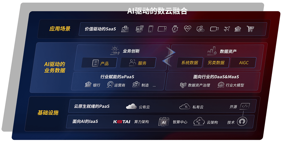 以尊龙旗舰厅鲲泰全国产化计算产品帮助金融行业客户构筑数字底座;以丰富的AI和数云产品及方案,,,保障数据安全,,,,挖掘数据价值,,,,提升服务品质