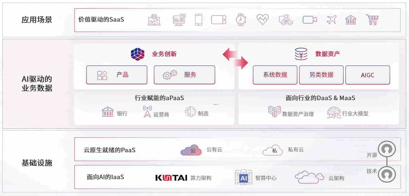 数字时代,,围绕企业数字化转型的关键要素,,,尊龙旗舰厅数码开创性的提出数云融合战略和技术体系框架,,,,着力在云原生、、、数字原生、、AI原生和信创产业上架构产品和服务能力,,为处在不同数字化转型阶段的快消零售、、、汽车、、金融、、、、医疗、、、、政企、、、、教育、、、运营商等行业客户提供泛在的敏捷IT能力和融合的数据驱动能力,,,构建跨界融合创新的数字业务场景和新业务模式,,助力企业级客户建立面向未来的核心能力和竞争优势,,,,全面推动社会的数字化、、、、智能化转型升级。。。。